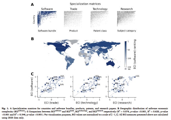 César yeni bir araştırmasında ürün uzayını yazılım dünyası için yapmış. Bu kez ihracat verisi kullanmamışlar. Zira outsourcing (dış kaynak kullanımı) nedeniyle yazılımda ürünün menşesini belirlemek çok zor. Doğru düzgün veri de yok.