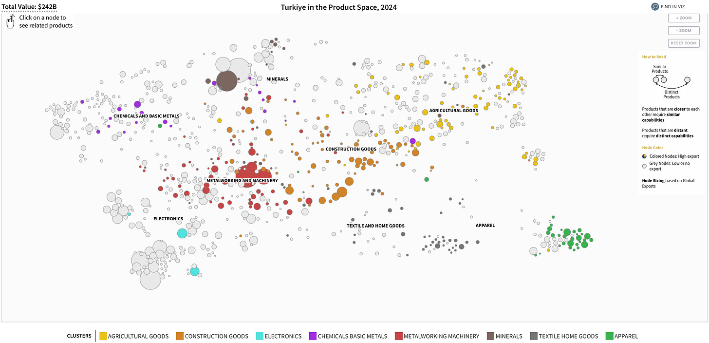 Harvard Üniversitesi’nden hocam Ricardo Hausmann ve daha önce kitabından bahsettiğim César Hidalgo’nun geliştirdiği ürün uzayı metodolojisini, 2021 yılında Cumhurbaşkanı Recep Tayyip Erdoğan’ın açıkladığı reform paketinde kullanıldığı için daha önce yazmıştım.