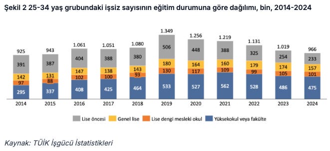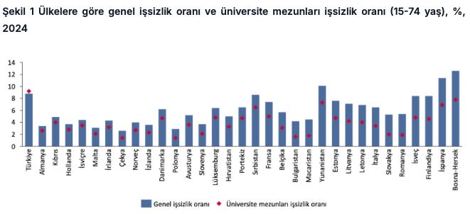 Öncelikle Türkiye’de gereğinden fazla üniversite var. Bunu da uluslararası istatistiklerden görebiliyoruz: Avrupa ülkeleri arasında üniversite mezunlarının ortalama işsizliğinin genel işsizlik oranlarından daha yüksek olduğu başka bir ülke yok!