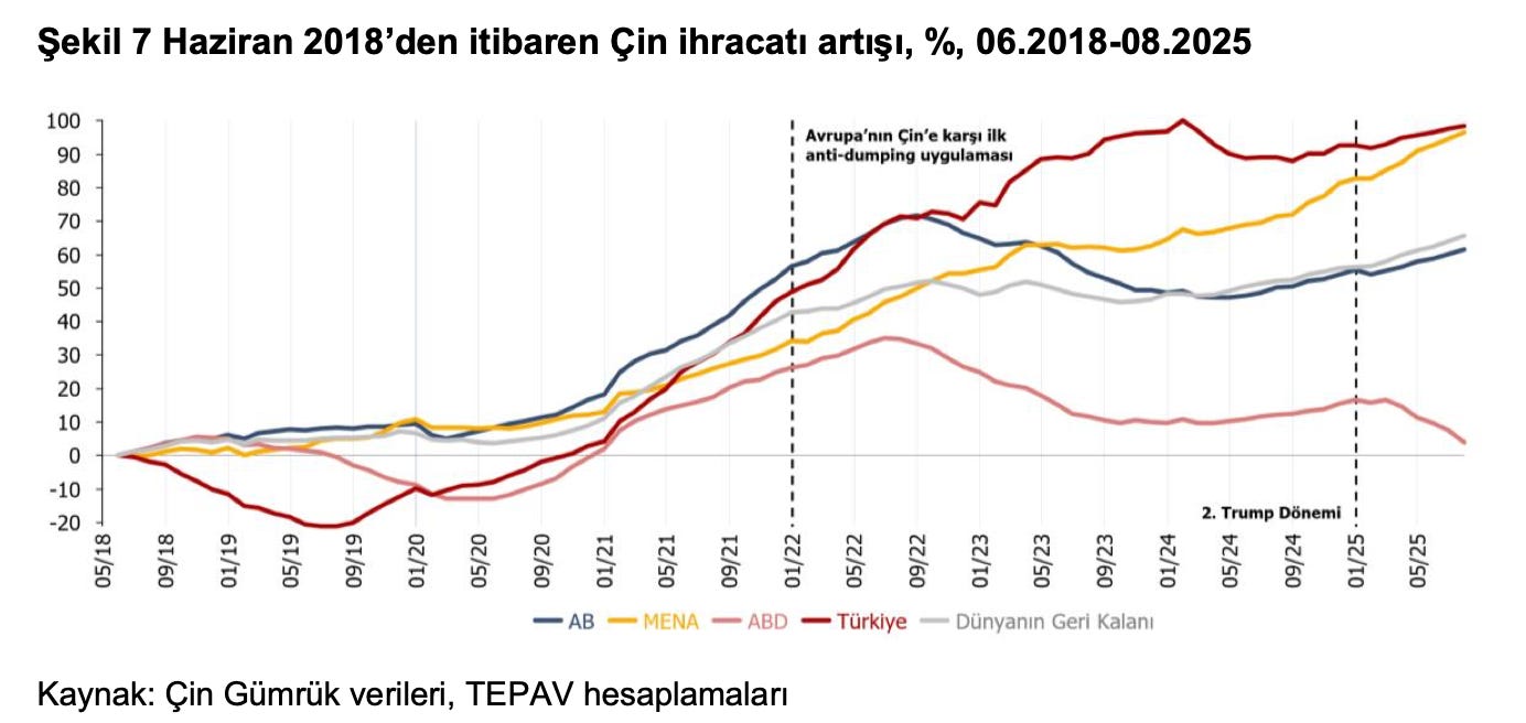 ABD’de bu dönemde Çin’den yapılan ithalat aynı seviyede kalmış. Avrupa Birliği’nde ve dünyanın diğer yerlerinde de Türkiye’deki veya Ortadoğu’daki kadar bir artış olmamış.