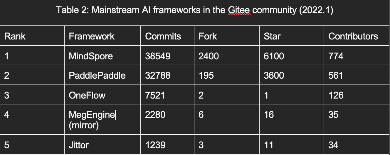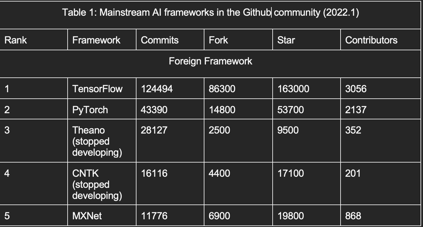Çin’de yeni tartışmaya açılan konu: Yapay Zeka Çerçeveleri’nde (AI Framework – çeviriyi doğru yapıyor muyum emin değilim :)) ABD’den ne kadar geri kaldıkları. Malum dünyada yeni trend teknolojik kutuplaşma [yukarıda bahsettiğim Eurasia raporunda 2. risk]. Geçen ay Çin Bilgi ve İletişim Akademisi (CAICT), bu konuda bir rapor yayımladı.