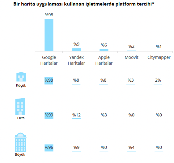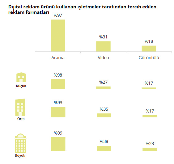 Örnek olarak, Türkiye’de dijital reklam yapan işletmelerin %99’u, reklam verirken ilk sırada Google’ın reklam ürünlerini tercih ediyor. Tercih değil, daha doğrusu zaten başka rakip yok.