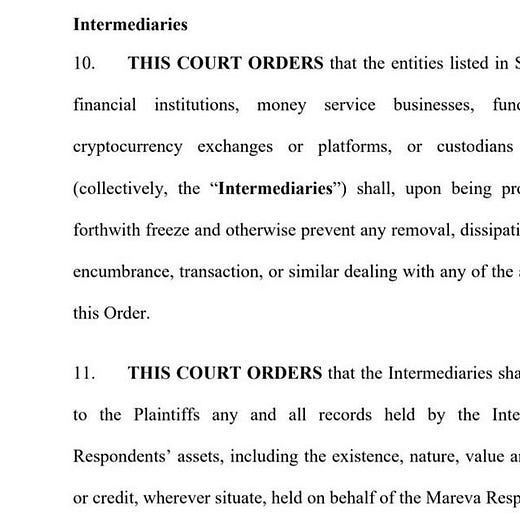 Protestolar canına tak eden Ottawa sakinleri, Kanada'dadaki protestocularını finanse eden kripto cüzdanlarını dondurmak için açtığı gizli davayı kazandı. Devam eden gösteriler için fon sağlamak amacıyla Kanada'nın "Özgürlük Konvoyu"nun ana organizatörlerine bağlı en az 146 kripto para cüzdanını ve banka varlığını dondurmak kararı aldı. (Bu karara İngiltere ve Kanada’da mavera kararı deniyor, bizim ihtiyati tedbir kararı ile özdeşleştirebiliriz)