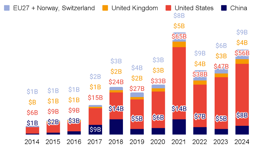 Yapay zekâya ayrılan fonların büyüklüğü ise 2024 yılında 100 milyar dolara yaklaşmış durumda.