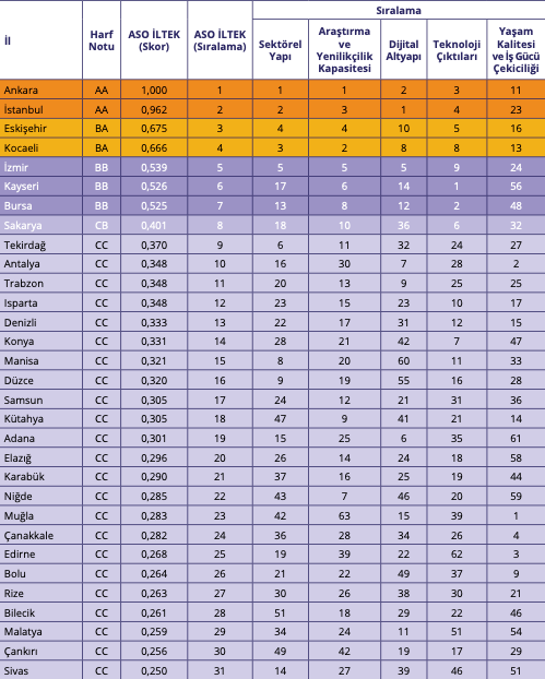 Rapordaki endekste Ankara birinci çıkmış. Ama birazdan anlatacağım üzere çalışmada iller geniş ve güzel bir veri seti ile mukayese edilmiş. Yani Ankara Sanayi Odası kendi şehrine torpil yapmış değil.